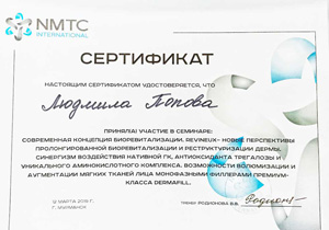 Опыт работы в эстетической косметологии более 20 лет. Регулярно совершенствует профессиональный уровень на курсах повышения квалификации, семинарах, форумах.
